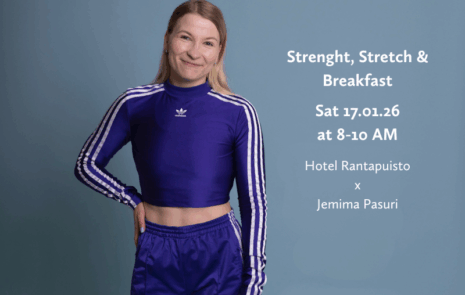 3.12.2025Tervetuloa mukaan Strenght, Stretch & Breakfast- hemmotteluaamuun Hotel Rantapuistoon! Aamutreeninä on lempeän tehokas voimatreeni kehonpainolla sekä dynaaminen venyttelyharjoitus (60min), jonka jälkeen siirrymme hotelliaamiaiselle merenrantamaisemiin. Aamutreenin ohjaa valmentaja Jemima Pasuri.